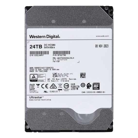 Dysk serwerowy HDD Western Digital Ultrastar DC HC580 WUH722424ALE6L4 (24 TB; 3,5"; SATA)